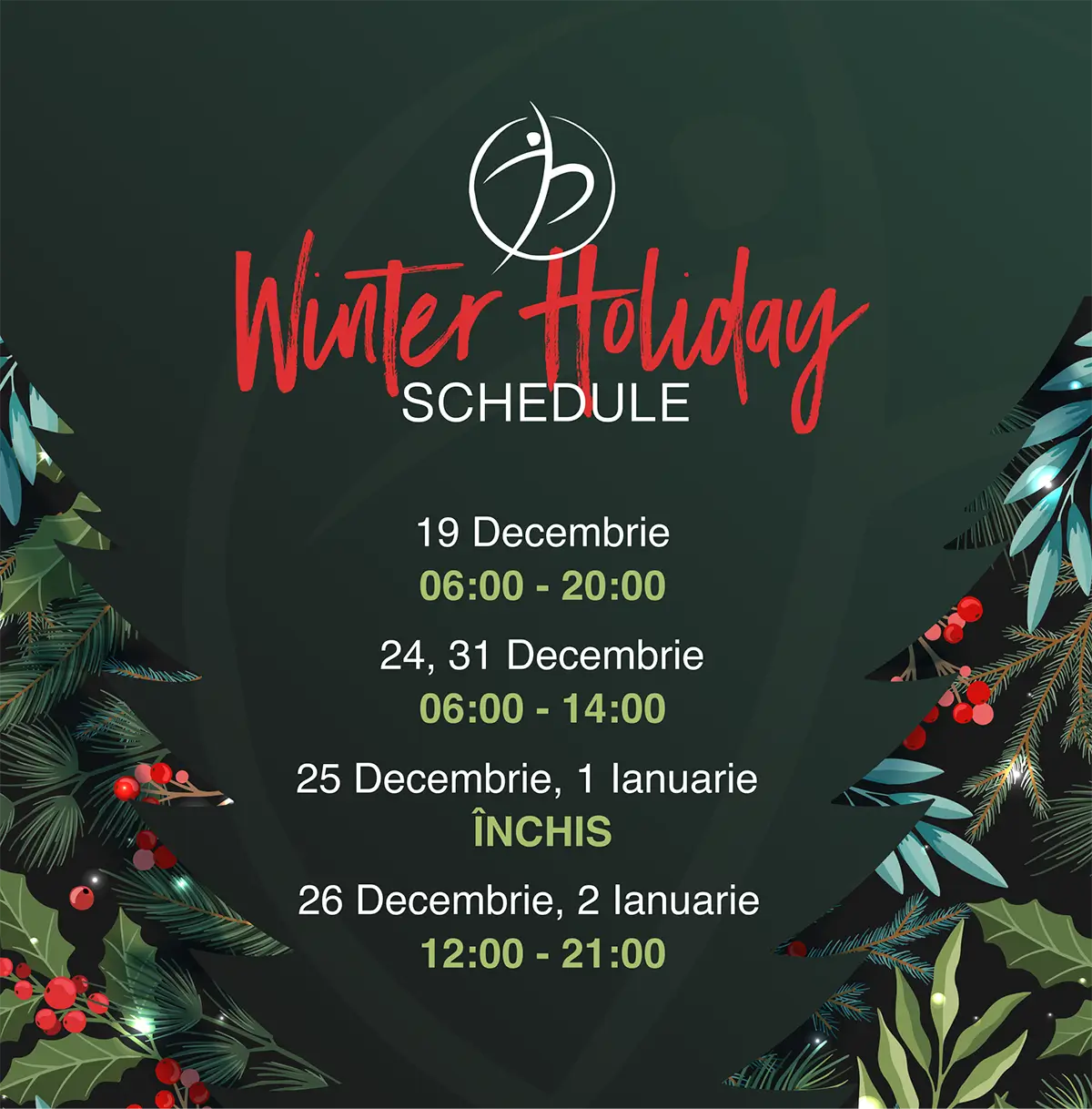 Descoperiți mai jos programul special de sărbători, pentru a vă putea planifica momentele de mișcare, răsfăț și reset.