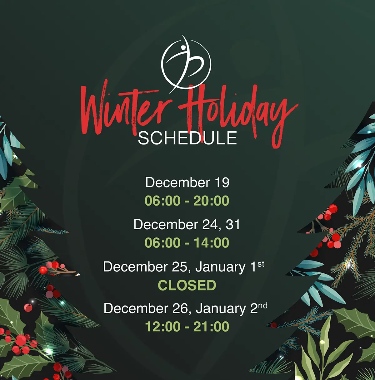 Below, you can find our special holiday schedule, so you can plan your moments of movement, self-care and reset.