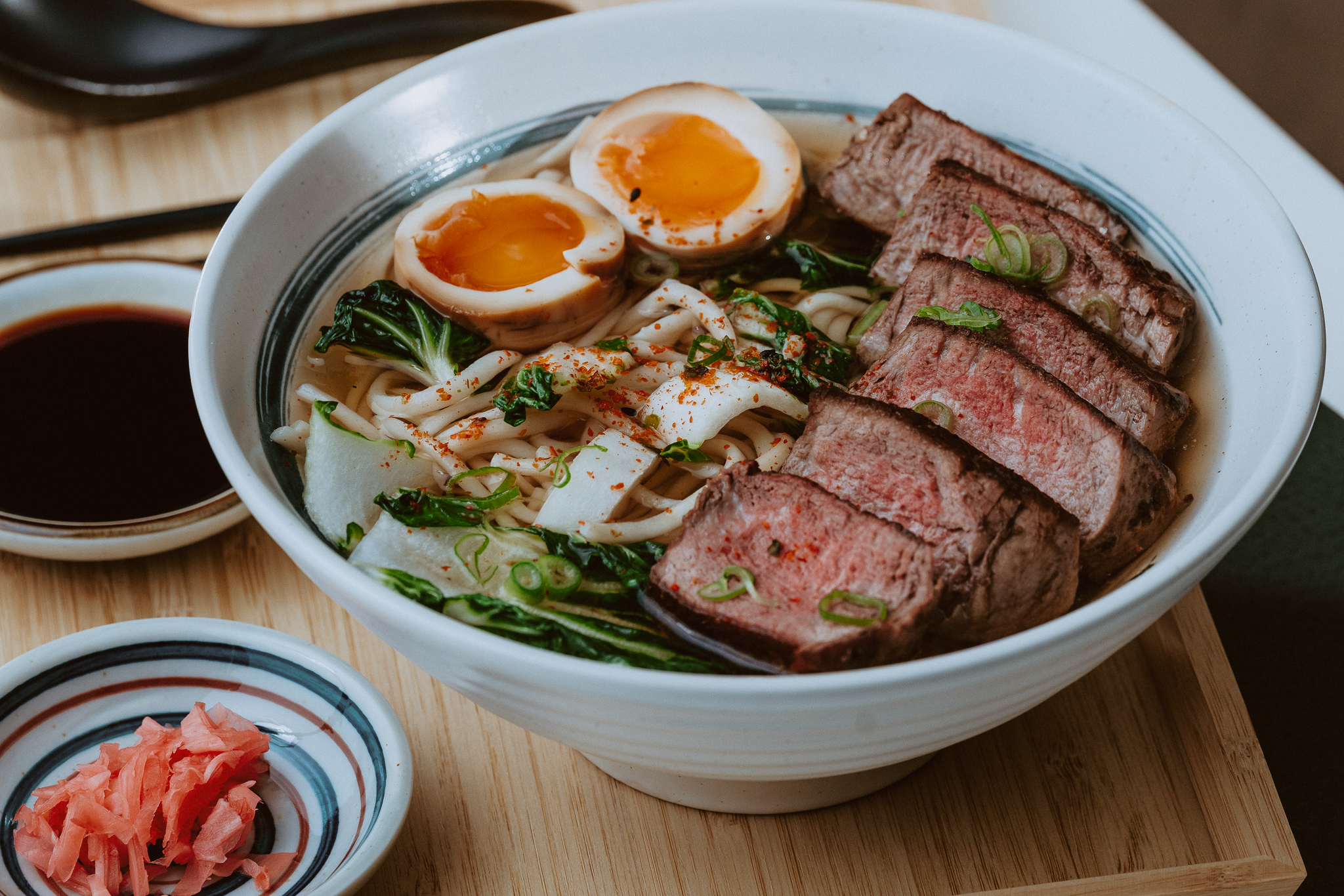 Beef & dashi broth, beef sirloin, marinated egg, bok choy, pickled daikon