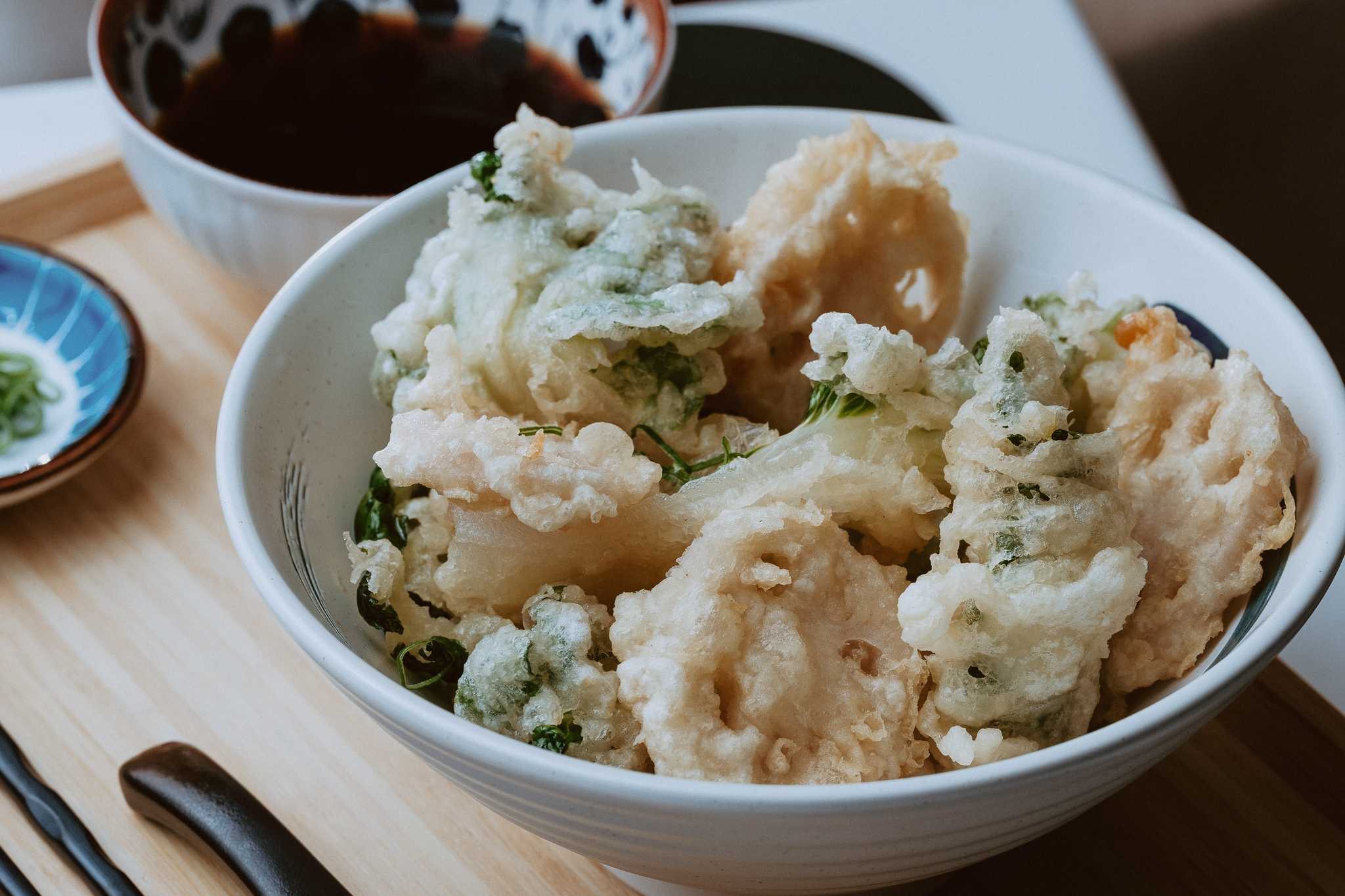 King oyster mushroom, lotus root, bok choy, lightly fried in tempura batter